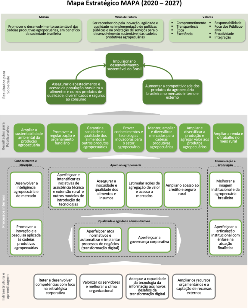 O Plano Estratégico Mapa 2020-2027 possui esse Mapa Estratégico